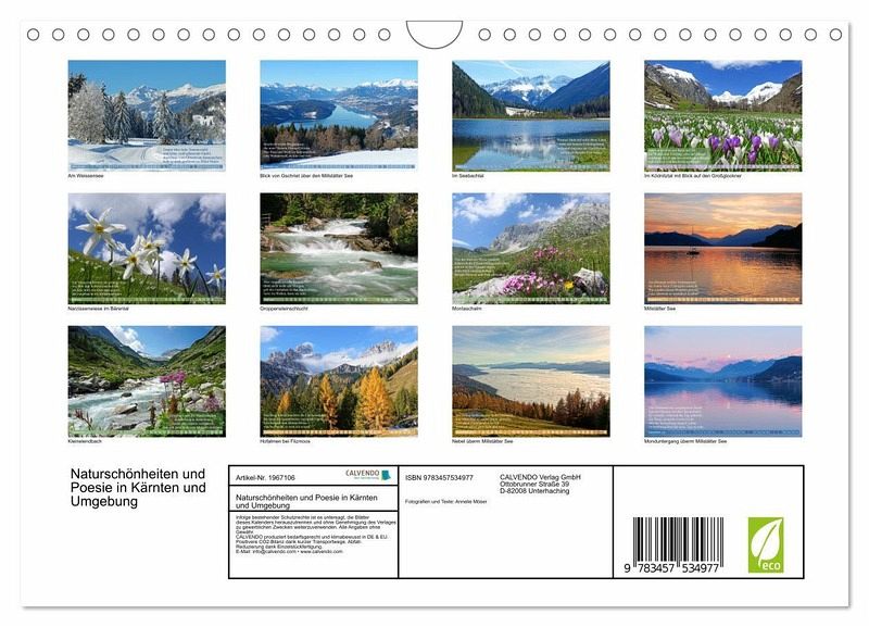 Hochwertiger Wandkalender mit 12 wunderschönen Bildern. Unsere Umwelt liegt uns am Herzen. Daher verwenden wir ausschließlich FSC-zertifizierte Papiere aus verantwortungsvoller Waldwirtschaft. Wir vermeiden Überproduktion und somit deutliche Abfallmengen, da wir bedarfsgerecht in Einzelfertigung in Deutschland (Made in Germany) produzieren. Wir halten unsere Transportwege kurz und sorgen für eine klimabewusste Logistik.