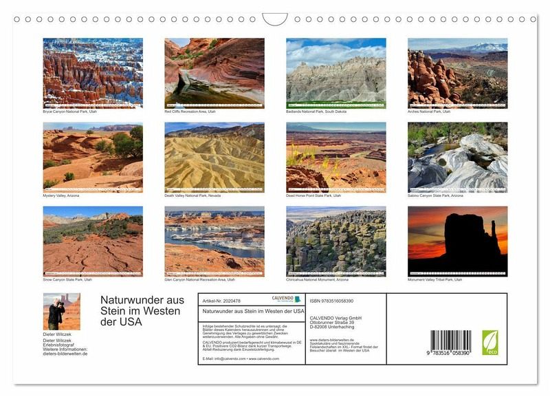 QUALITÄT - Hochwertiger Fotokalender mit 12 wunderschönen Motiven auf lichtbeständigem Bilderdruckpapier, robuste Spiralbindung mit Aufhängebügel.NACHHALTIG - deutliche Abfallreduzierung durch bedarfsgerechte Einzelstückfertigung, umweltfreundliches FSC-zertifiziertes Papier, Produktion in Deutschland, klimabewusste Logistik.PERFEKTES GESCHENK - Kalender für Freunde und Familie, für Kinder und Erwachsene, jung und alt, zu Weihnachten, Geburtstag oder zwischendurch.VIELFALT - Bildkalender in verschiedenen Formaten, z.B. DIN A5, DIN A4, DIN A3 sowie DIN A2. Ob Naturmotiv, Gemälde oder Fotos, ideal für ein persönliches Wohlfühlambiente.Überwältigende Felslandschaften in den einzigartigen Canyons und Nationalparks der USA von Autor(in): Dieter Wilczek