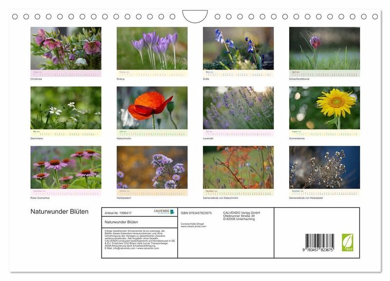 QUALITÄT - Hochwertiger Fotokalender mit 12 wunderschönen Motiven auf lichtbeständigem Bilderdruckpapier, robuste Spiralbindung mit Aufhängebügel.NACHHALTIG - deutliche Abfallreduzierung durch bedarfsgerechte Einzelstückfertigung, umweltfreundliches FSC-zertifiziertes Papier, Produktion in Deutschland, klimabewusste Logistik.PERFEKTES GESCHENK - Kalender für Freunde und Familie, für Kinder und Erwachsene, jung und alt, zu Weihnachten, Geburtstag oder zwischendurch.VIELFALT - Bildkalender in verschiedenen Formaten, z.B. DIN A5, DIN A4, DIN A3 sowie DIN A2. Ob Naturmotiv, Gemälde oder Fotos, ideal für ein persönliches Wohlfühlambiente.Die wunderbare Welt der Blüten in faszinierenden Fotos von Autor(in): Cordula Kelle-Dingel