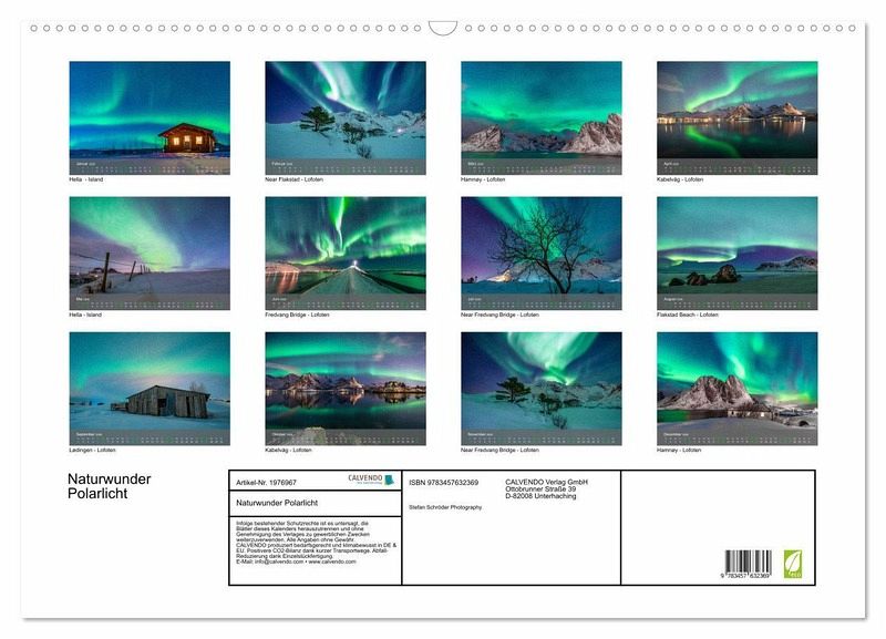 QUALITÄT - Hochwertiger Fotokalender mit 12 wunderschönen Motiven auf lichtbeständigem Bilderdruckpapier, robuste Spiralbindung mit Aufhängebügel.NACHHALTIG - deutliche Abfallreduzierung durch bedarfsgerechte Einzelstückfertigung, umweltfreundliches FSC-zertifiziertes Papier, Produktion in Deutschland, klimabewusste Logistik.PERFEKTES GESCHENK - Kalender für Freunde und Familie, für Kinder und Erwachsene, jung und alt, zu Weihnachten, Geburtstag oder zwischendurch.VIELFALT - Bildkalender in verschiedenen Formaten, z.B. DIN A5, DIN A4, DIN A3 sowie DIN A2. Ob Naturmotiv, Gemälde oder Fotos, ideal für ein persönliches Wohlfühlambiente.Fotos des Naturwunders der nordischenPolarlichter von Autor(in): Stefan Schröder