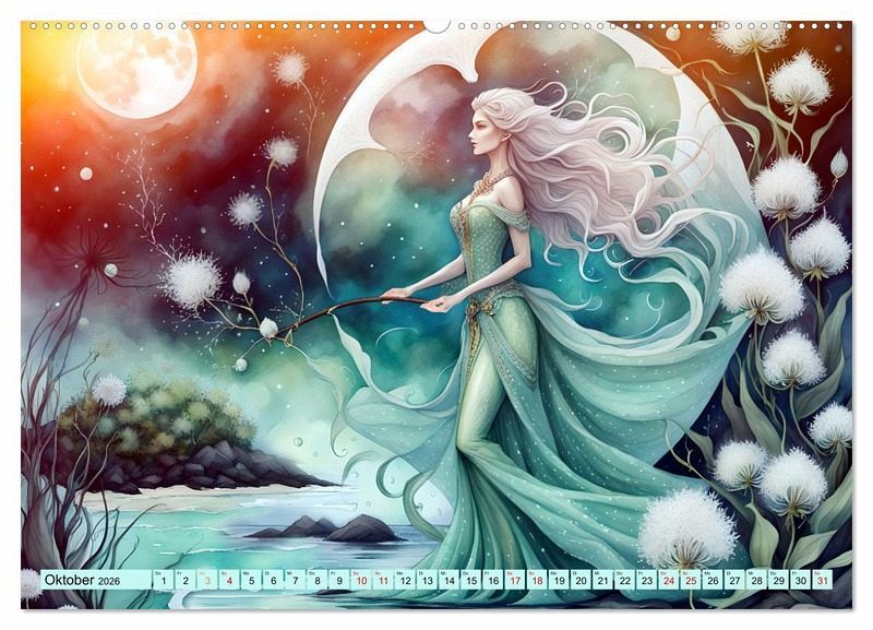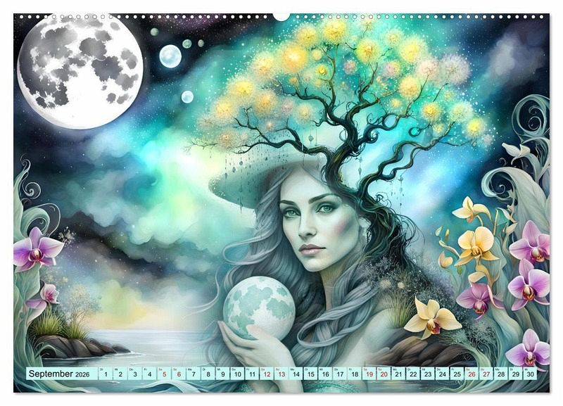 Jedes Bild strahlt eine mystische Atmosphäre aus und lädt dazu ein, in die Welt der Naturzauberinnen einzutauchen. Lassen Sie sich von der Schönheit und Magie inspirieren. Monat für Monat ein Stück Mystik für Ihr Zuhause.