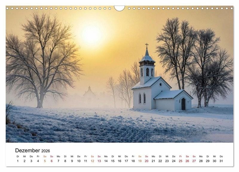 Dezember: Die Dorfkirche ruht in winterlicher Stille - ein Ort der Einkehr im Schnee