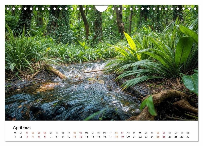 April: Ein Bachlauf windet sich durch den frischen Frühlingswald - lebendig und klar