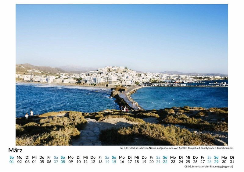 Entdecken Sie die Schönheit der griechischen Insel Naxos mit unserem exklusiven Wandkalender! Lassen Sie sich Monat für Monat von 12 atemberaubenden Motiven verzaubern, die die malerischen Landschaften, historischen Stätten und das kristallklare Wasser dieser einzigartigen Insel einfangen. Gedruckt auf hochwertigem, lichtbeständigem Bilderdruckpapier, bringt dieser Kalender mediterranes Flair in Ihr Zuhause oder Büro. Nachhaltigkeit liegt uns am Herzen: Unsere Kalender werden in Deutschland auf FSC-zertifiziertem Papier produziert. Gönnen Sie sich oder Ihren Liebsten ein Stück Griechenland - perfekt als Geschenk oder zur eigenen Inspiration! Hochwertig Erleben Sie ein Jahr voller Eleganz mit unserem Premium-Fotokalender. Jedes der 12 Motive ist auf hochwertigem, lichtbeständigem Bilderdruckpapier gedruckt, um die Lebendigkeit jedes Bildes zu bewahren. Die robuste Spiralbindung gewährleistet Langlebigkeit und einfache Handhabung. Nachhaltig Unser Engagement für die Umwelt spiegelt sich in jedem Exemplar wider. Durch die Produktion auf Abruf reduzieren wir signifikant unseren Abfall. Wir verwenden ausschließlich umweltfreundliches, FSC-zertifiziertes Papier. Stolz gefertigt in Deutschland, achten wir bei unserer Logistik auf Klimaschutz, um unseren ökologischen Fußabdruck zu minimieren. Das ideale Geschenk Dieser Kalender ist das perfekte Präsent für jeden Anlass - ob Weihnachten, Geburtstage oder einfach als liebevolle Aufmerksamkeit zwischendurch. Geeignet für Freunde, Familie, Kinder und Erwachsene gleichermaßen, bereichert er jedes Zuhause mit seiner Vielfalt und Schönheit, unabhängig vom Alter der Beschenkten.