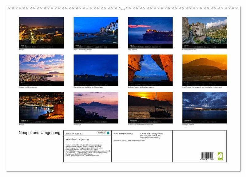 QUALITÄT - Hochwertiger Fotokalender mit 12 wunderschönen Motiven auf lichtbeständigem Bilderdruckpapier, robuste Spiralbindung mit Aufhängebügel.NACHHALTIG - deutliche Abfallreduzierung durch bedarfsgerechte Einzelstückfertigung, umweltfreundliches FSC-zertifiziertes Papier, Produktion in Deutschland, klimabewusste Logistik.PERFEKTES GESCHENK - Kalender für Freunde und Familie, für Kinder und Erwachsene, jung und alt, zu Weihnachten, Geburtstag oder zwischendurch.VIELFALT - Bildkalender in verschiedenen Formaten, z.B. DIN A5, DIN A4, DIN A3 sowie DIN A2. Ob Naturmotiv, Gemälde oder Fotos, ideal für ein persönliches Wohlfühlambiente.Italien. Die schöne Stadt Neapel und ihre Umgebung in Bildern von Alessandro Tortora von Autor(in): Alessandro Tortora