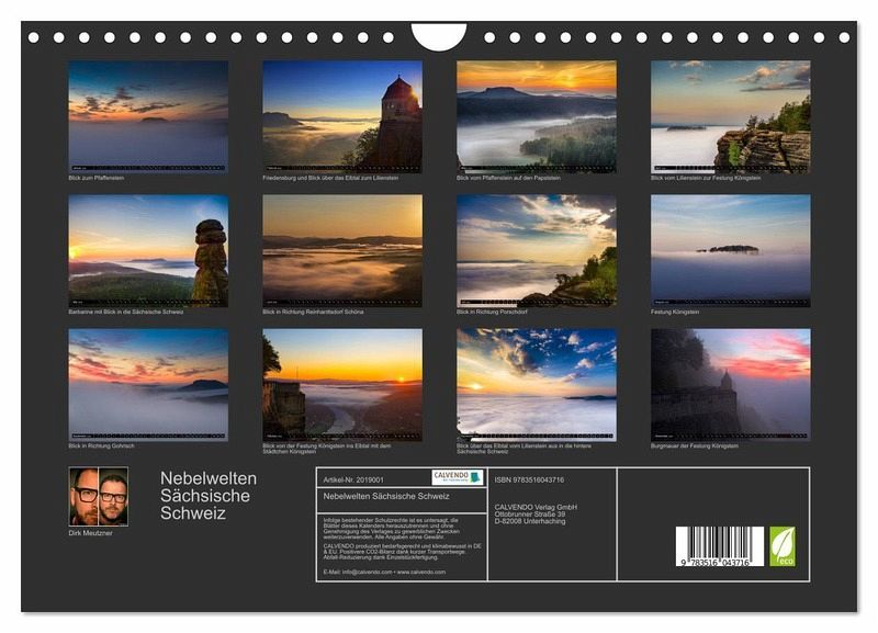 QUALITÄT - Hochwertiger Fotokalender mit 12 wunderschönen Motiven auf lichtbeständigem Bilderdruckpapier, robuste Spiralbindung mit Aufhängebügel.NACHHALTIG - deutliche Abfallreduzierung durch bedarfsgerechte Einzelstückfertigung, umweltfreundliches FSC-zertifiziertes Papier, Produktion in Deutschland, klimabewusste Logistik.PERFEKTES GESCHENK - Kalender für Freunde und Familie, für Kinder und Erwachsene, jung und alt, zu Weihnachten, Geburtstag oder zwischendurch.VIELFALT - Bildkalender in verschiedenen Formaten, z.B. DIN A5, DIN A4, DIN A3 sowie DIN A2. Ob Naturmotiv, Gemälde oder Fotos, ideal für ein persönliches Wohlfühlambiente.Nebelwelten im Nationalpark Sächsische Schweiz von Autor(in): Dirk Meutzner