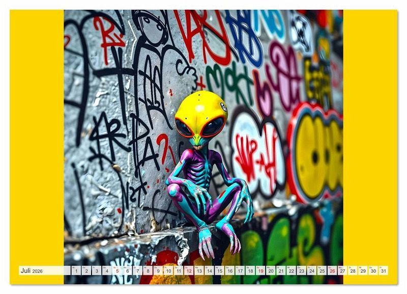 QUALITÄT - Hochwertiger Fotokalender mit 12 wunderschönen Motiven auf lichtbeständigem Bilderdruckpapier, robuste Spiralbindung mit Aufhängebügel.NACHHALTIG - deutliche Abfallreduzierung durch bedarfsgerechte Einzelstückfertigung, umweltfreundliches FSC-zertifiziertes Papier, Produktion in Deutschland, klimabewusste Logistik.PERFEKTES GESCHENK - Kalender für Freunde und Familie, für Kinder und Erwachsene, jung und alt, zu Weihnachten, Geburtstag oder zwischendurch.VIELFALT - Bildkalender in verschiedenen Formaten, z.B. DIN A5, DIN A4, DIN A3 sowie DIN A2. Ob Naturmotiv, Gemälde oder Fotos, ideal für ein persönliches Wohlfühlambiente.Street Aliens - Urban Art von Autor(in): Claudia Schimmack