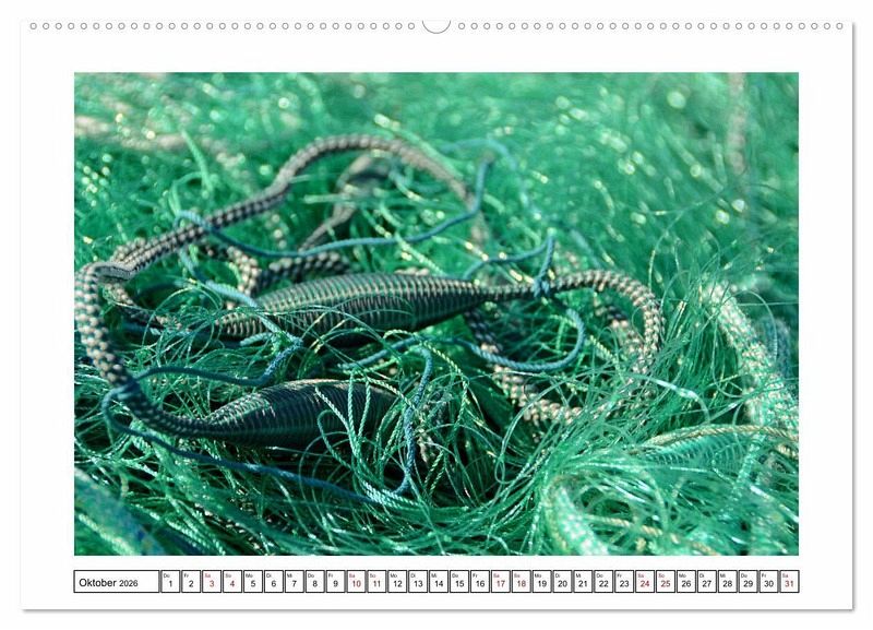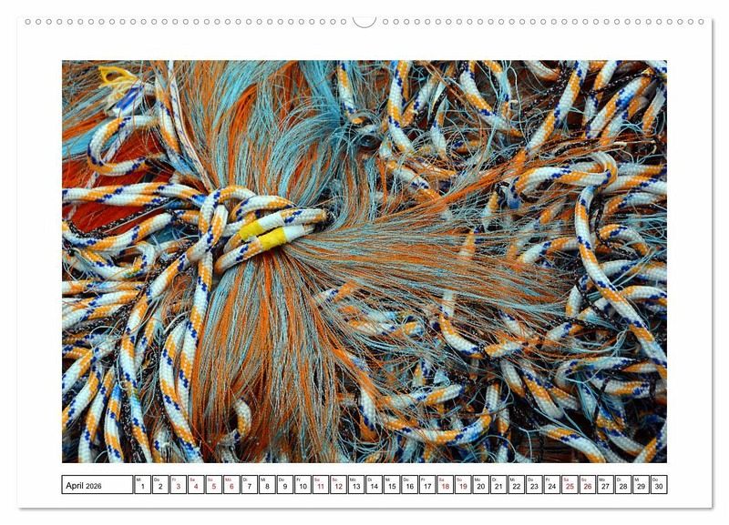 Bunte Fischernetze als Nahaufnahmen. Lassen Sie sich von den Details dieser farbenfrohen Netze verzaubern und denken Sie dabei an Hafenromantik, Fischfang und Möwengeschrei.