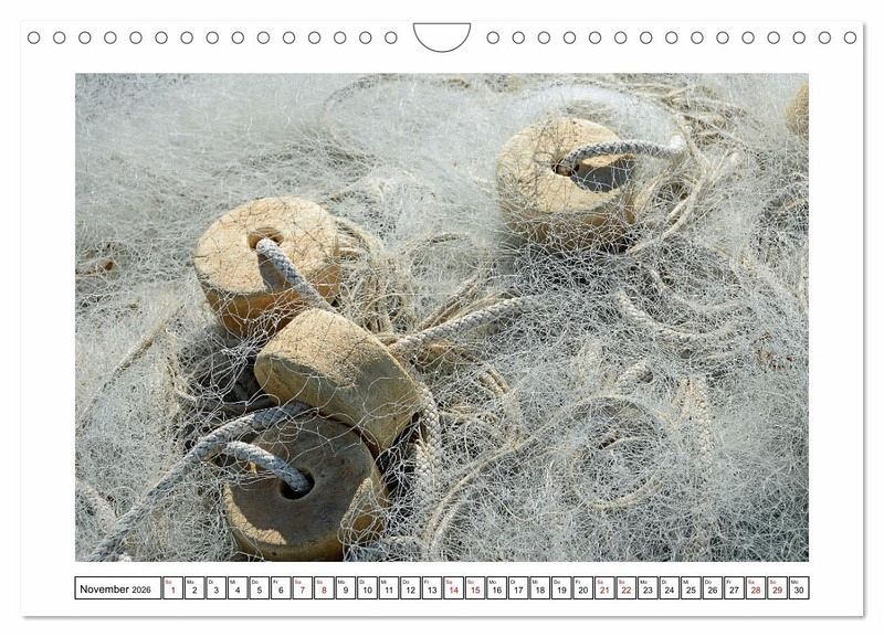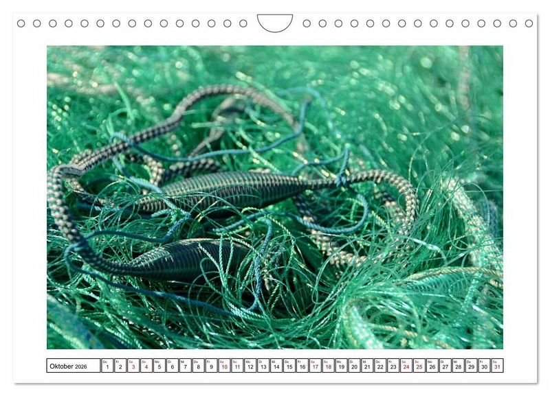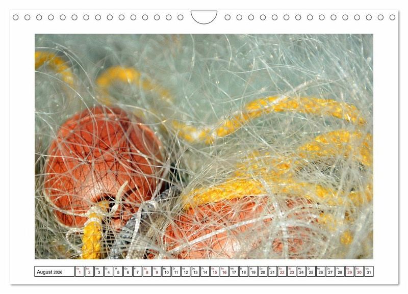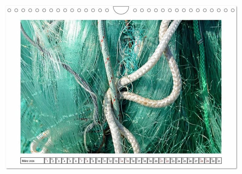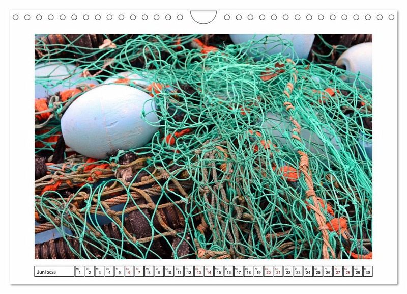 Bunte Fischernetze als Nahaufnahmen. Lassen Sie sich von den Details dieser farbenfrohen Netze verzaubern und denken Sie dabei an Hafenromantik, Fischfang und Möwengeschrei.