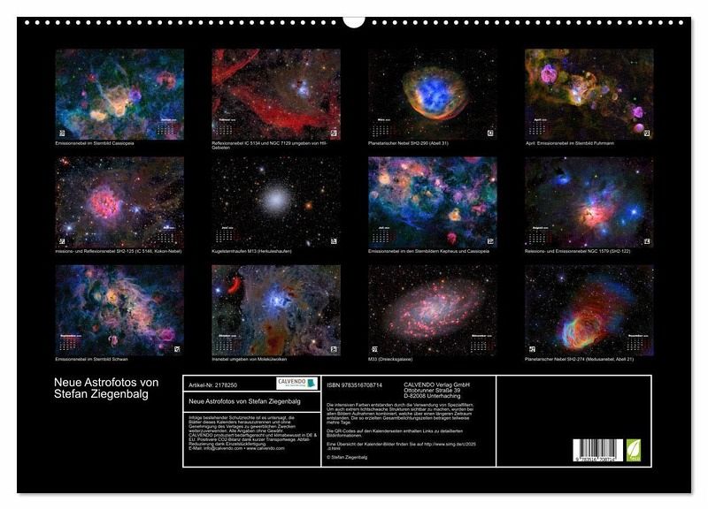 QUALITÄT - Hochwertiger Fotokalender mit 12 wunderschönen Motiven auf lichtbeständigem Bilderdruckpapier, robuste Spiralbindung mit Aufhängebügel.NACHHALTIG - deutliche Abfallreduzierung durch bedarfsgerechte Einzelstückfertigung, umweltfreundliches FSC-zertifiziertes Papier, Produktion in Deutschland, klimabewusste Logistik.PERFEKTES GESCHENK - Kalender für Freunde und Familie, für Kinder und Erwachsene, jung und alt, zu Weihnachten, Geburtstag oder zwischendurch.VIELFALT - Bildkalender in verschiedenen Formaten, z.B. DIN A5, DIN A4, DIN A3 sowie DIN A2. Ob Naturmotiv, Gemälde oder Fotos, ideal für ein persönliches Wohlfühlambiente.Farbenprächtige astronomische Objekte fotografiert von Stefan Ziegenbalg. von Autor(in): Stefan Stefan Ziegenbalg