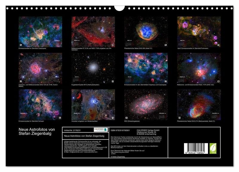 QUALITÄT - Hochwertiger Fotokalender mit 12 wunderschönen Motiven auf lichtbeständigem Bilderdruckpapier, robuste Spiralbindung mit Aufhängebügel.NACHHALTIG - deutliche Abfallreduzierung durch bedarfsgerechte Einzelstückfertigung, umweltfreundliches FSC-zertifiziertes Papier, Produktion in Deutschland, klimabewusste Logistik.PERFEKTES GESCHENK - Kalender für Freunde und Familie, für Kinder und Erwachsene, jung und alt, zu Weihnachten, Geburtstag oder zwischendurch.VIELFALT - Bildkalender in verschiedenen Formaten, z.B. DIN A5, DIN A4, DIN A3 sowie DIN A2. Ob Naturmotiv, Gemälde oder Fotos, ideal für ein persönliches Wohlfühlambiente.Farbenprächtige astronomische Objekte fotografiert von Stefan Ziegenbalg. von Autor(in): Stefan Stefan Ziegenbalg