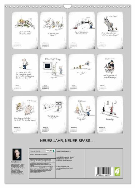 QUALITÄT - Hochwertiger Fotokalender mit 12 wunderschönen Motiven auf lichtbeständigem Bilderdruckpapier, robuste Spiralbindung mit Aufhängebügel.NACHHALTIG - deutliche Abfallreduzierung durch bedarfsgerechte Einzelstückfertigung, umweltfreundliches FSC-zertifiziertes Papier, Produktion in Deutschland, klimabewusste Logistik.PERFEKTES GESCHENK - Kalender für Freunde und Familie, für Kinder und Erwachsene, jung und alt, zu Weihnachten, Geburtstag oder zwischendurch.VIELFALT - Bildkalender in verschiedenen Formaten, z.B. DIN A5, DIN A4, DIN A3 sowie DIN A2. Ob Naturmotiv, Gemälde oder Fotos, ideal für ein persönliches Wohlfühlambiente.Cartoon-Kalender von Autor(in): Carlo Büchner