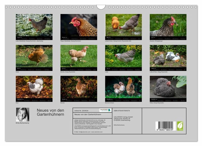 QUALITÄT - Hochwertiger Fotokalender mit 12 wunderschönen Motiven auf lichtbeständigem Bilderdruckpapier, robuste Spiralbindung mit Aufhängebügel.NACHHALTIG - deutliche Abfallreduzierung durch bedarfsgerechte Einzelstückfertigung, umweltfreundliches FSC-zertifiziertes Papier, Produktion in Deutschland, klimabewusste Logistik.PERFEKTES GESCHENK - Kalender für Freunde und Familie, für Kinder und Erwachsene, jung und alt, zu Weihnachten, Geburtstag oder zwischendurch.VIELFALT - Bildkalender in verschiedenen Formaten, z.B. DIN A5, DIN A4, DIN A3 sowie DIN A2. Ob Naturmotiv, Gemälde oder Fotos, ideal für einpersönliches Wohlfühlambiente.Momentaufnahmen aus dem Leben glücklicher Hühner von Autor(in): Britta Berkenkamp