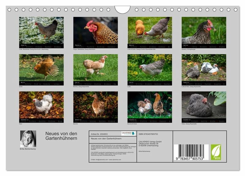 QUALITÄT - Hochwertiger Fotokalender mit 12 wunderschönen Motiven auf lichtbeständigem Bilderdruckpapier, robuste Spiralbindung mit Aufhängebügel.NACHHALTIG - deutliche Abfallreduzierung durch bedarfsgerechte Einzelstückfertigung, umweltfreundliches FSC-zertifiziertes Papier, Produktion in Deutschland, klimabewusste Logistik.PERFEKTES GESCHENK - Kalender für Freunde und Familie, für Kinder und Erwachsene, jung und alt, zu Weihnachten, Geburtstag oder zwischendurch.VIELFALT - Bildkalender in verschiedenen Formaten, z.B. DIN A5, DIN A4, DIN A3 sowie DIN A2. Ob Naturmotiv, Gemälde oder Fotos, ideal für einpersönliches Wohlfühlambiente.Momentaufnahmen aus dem Leben glücklicher Hühner von Autor(in): Britta Berkenkamp