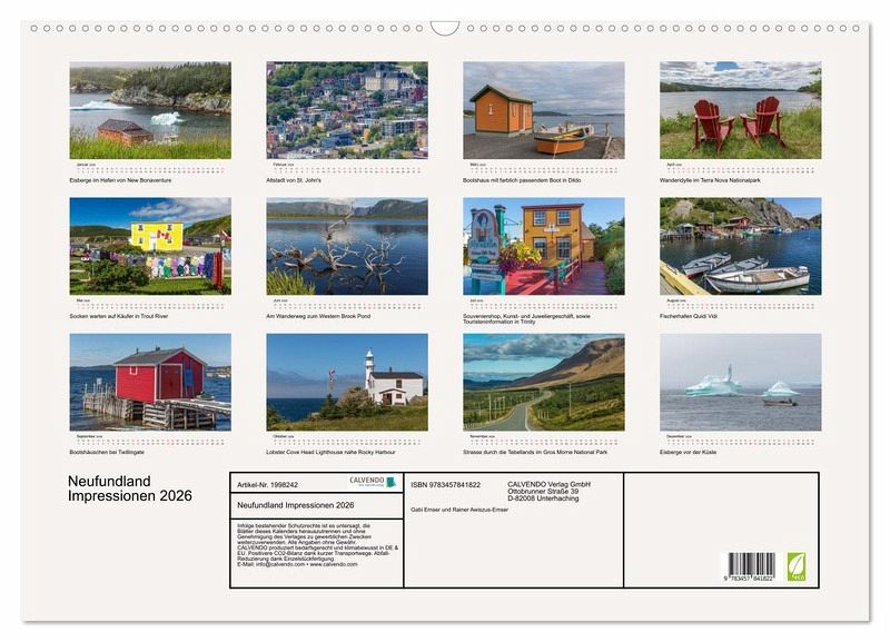 In Europa ist Neufundland noch ein eher unbekanntes Reiseziel. Mit diesem Kalender wollen wir dazu beitragen die teils rauhe, sehr abwechslungreiche Landschaft und die bunten Orte mit ihrem besonderen Charme bekannter zu machen.