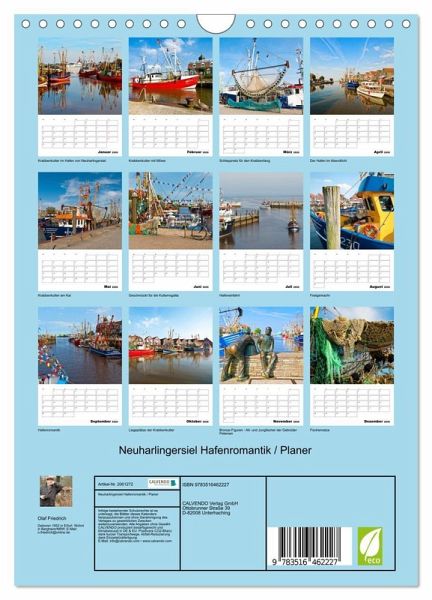 QUALITÄT - Hochwertiger Fotokalender mit 12 wunderschönen Motiven auf lichtbeständigem Bilderdruckpapier, robuste Spiralbindung mit Aufhängebügel.NACHHALTIG - deutliche Abfallreduzierung durch bedarfsgerechte Einzelstückfertigung, umweltfreundliches FSC-zertifiziertes Papier, Produktion in Deutschland, klimabewusste Logistik.PERFEKTES GESCHENK - Kalender für Freunde und Familie, für Kinder und Erwachsene, jung und alt, zu Weihnachten, Geburtstag oder zwischendurch.VIELFALT - Bildkalender in verschiedenen Formaten, z.B. DIN A5, DIN A4, DIN A3 sowie DIN A2. Ob Naturmotiv, Gemälde oder Fotos, ideal für ein persönliches Wohlfühlambiente.Romantische Hafenansichten von Neuharlingersiel von Autor(in): Olaf Friedrich