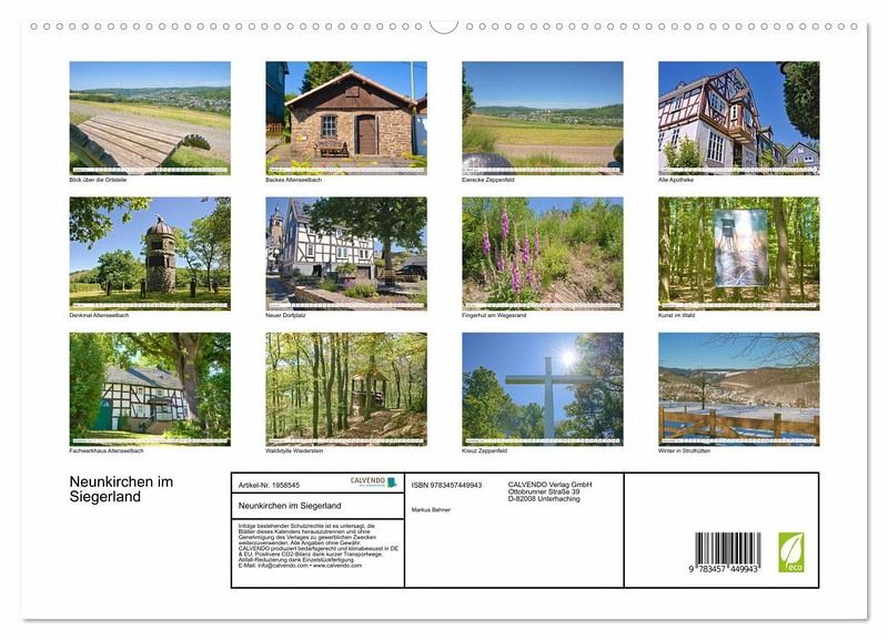 PREMIUM-LINIE - Brillanter Fotokalender mit 12 wunderschönen Motiven, Kunstdruck in Hochglanz in Museumsqualität.QUALITÄT - edle Materialien, stabile Rückwand mit 2 innovativen Einstecktaschen für eine optimale Präsentation an der Wand.NACHHALTIG - deutliche Abfallreduzierung durch bedarfsgerechte Einzelstückfertigung, umweltfreundliches FSC-zertifiziertes Papier, Produktion in Deutschland, klimabewusste Logistik.PERFEKTES GESCHENK - Kalender für Freunde und Familie, für Kinder und Erwachsene, jung und alt, zu Weihnachten, Geburtstag oder zwischendurch.Die grüne Gemeinde zwischen Sauerland und Westerwald. von Autor(in): Markus Behner
