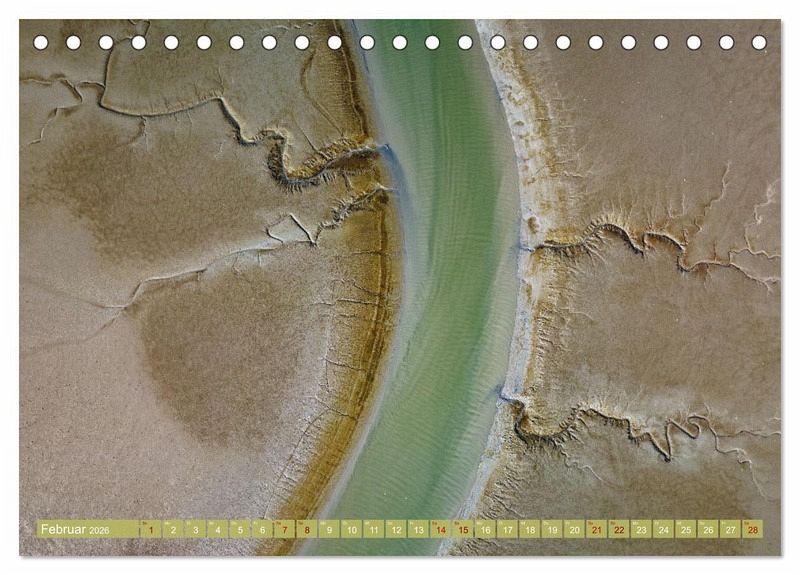 Vom Boden aus betrachtet bietet das Wattenmeer eher weniger spektakuläre Anblicke. Mit einer Drohne fotografiert eröffnen sich dagegen völlig unerwartete Ansichten und Einblicke, die Strukturen zu Tage fördern, die vom Boden aus weder zu erwarten noch zu erkennen sind. Die während einer viertägigen Fototour vom Dollart bis zur Wurster Nordseeküste aus Höhen zwischen 100 und 500 Metern entstandenen Bilder dieses Kalenders zeigen das Niedersächsische Wattenmeer aus einer völlig ungewohnten Perspektive.