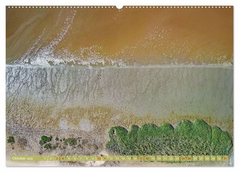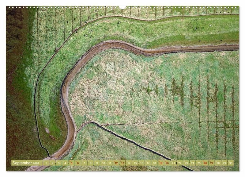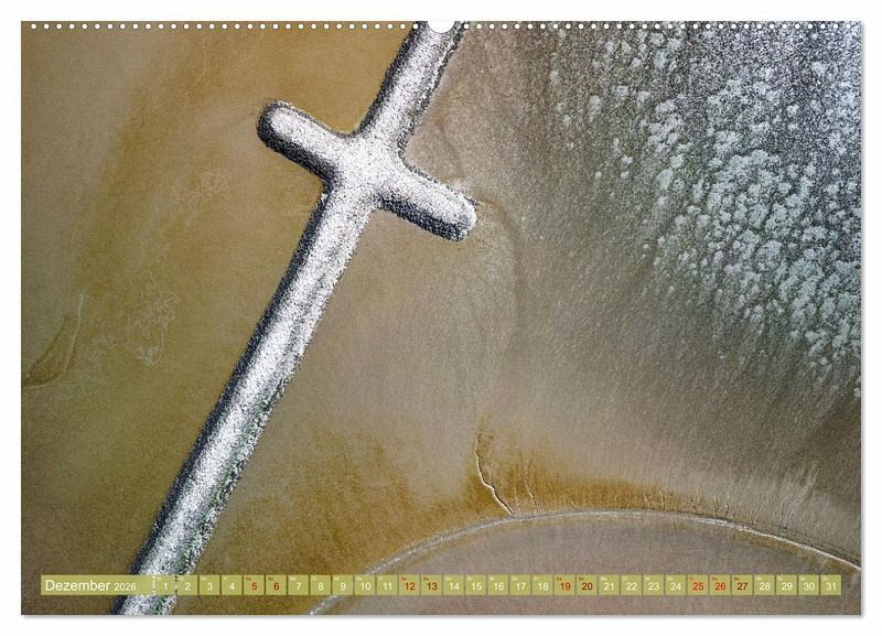 Vom Boden aus betrachtet bietet das Wattenmeer eher weniger spektakuläre Anblicke. Mit einer Drohne fotografiert eröffnen sich dagegen völlig unerwartete Ansichten und Einblicke, die Strukturen zu Tage fördern, die vom Boden aus weder zu erwarten noch zu erkennen sind. Die während einer viertägigen Fototour vom Dollart bis zur Wurster Nordseeküste aus Höhen zwischen 100 und 500 Metern entstandenen Bilder dieses Kalenders zeigen das Niedersächsische Wattenmeer aus einer völlig ungewohnten Perspektive.