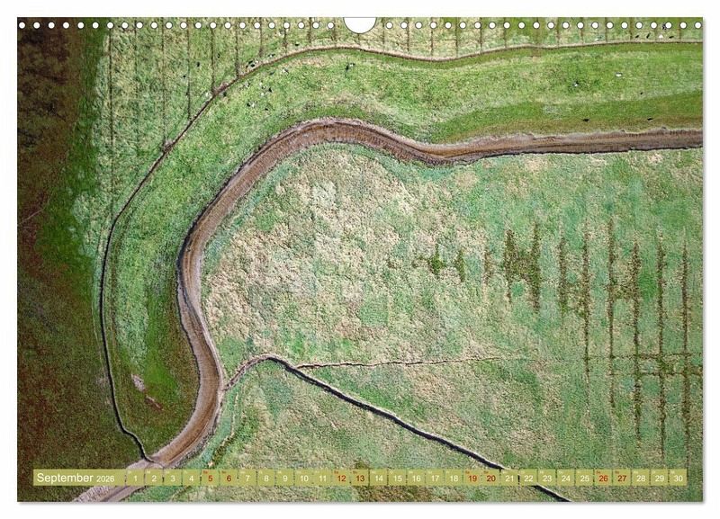 Vom Boden aus betrachtet bietet das Wattenmeer eher weniger spektakuläre Anblicke. Mit einer Drohne fotografiert eröffnen sich dagegen völlig unerwartete Ansichten und Einblicke, die Strukturen zu Tage fördern, die vom Boden aus weder zu erwarten noch zu erkennen sind. Die während einer viertägigen Fototour vom Dollart bis zur Wurster Nordseeküste aus Höhen zwischen 100 und 500 Metern entstandenen Bilder dieses Kalenders zeigen das Niedersächsische Wattenmeer aus einer völlig ungewohnten Perspektive.