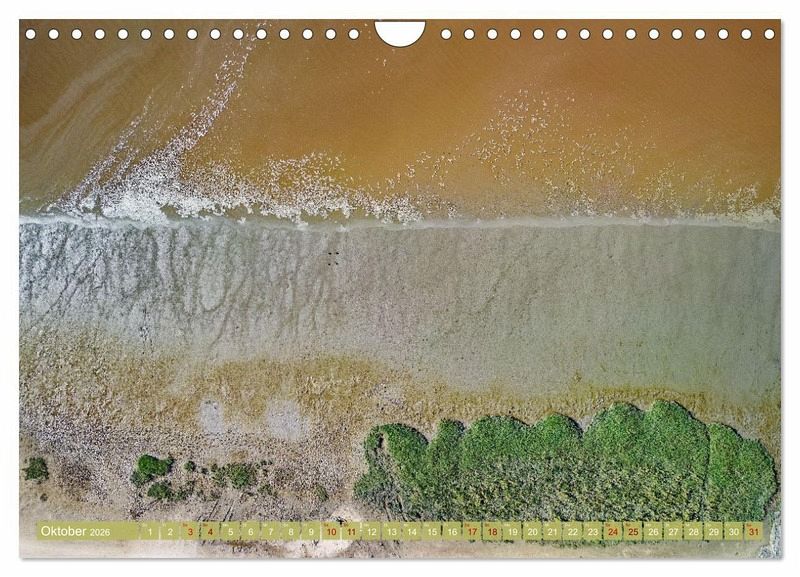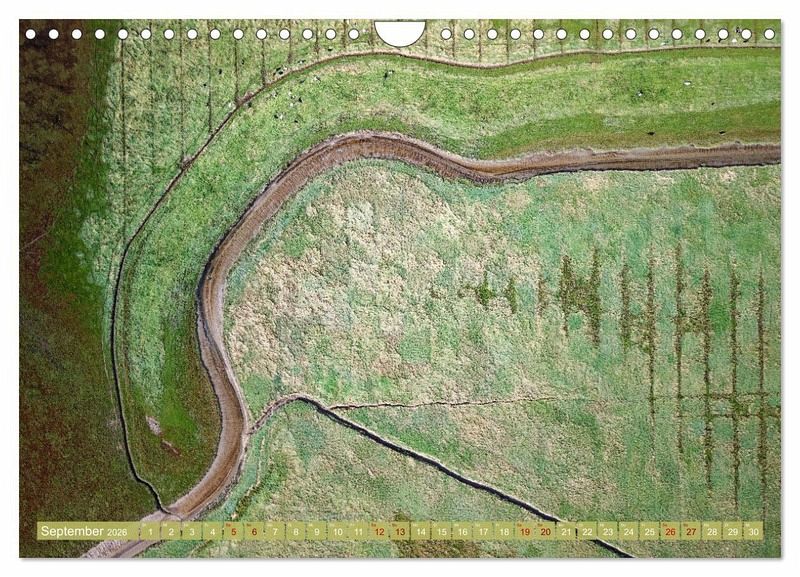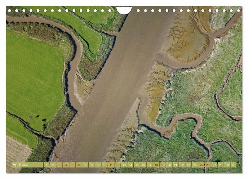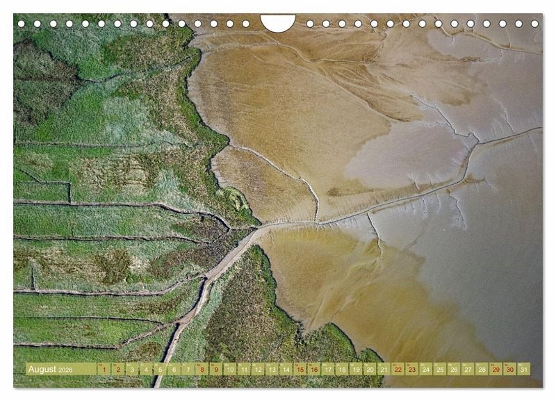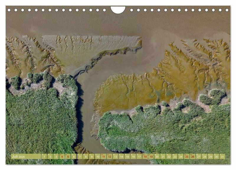 Vom Boden aus betrachtet bietet das Wattenmeer eher weniger spektakuläre Anblicke. Mit einer Drohne fotografiert eröffnen sich dagegen völlig unerwartete Ansichten und Einblicke, die Strukturen zu Tage fördern, die vom Boden aus weder zu erwarten noch zu erkennen sind. Die während einer viertägigen Fototour vom Dollart bis zur Wurster Nordseeküste aus Höhen zwischen 100 und 500 Metern entstandenen Bilder dieses Kalenders zeigen das Niedersächsische Wattenmeer aus einer völlig ungewohnten Perspektive.