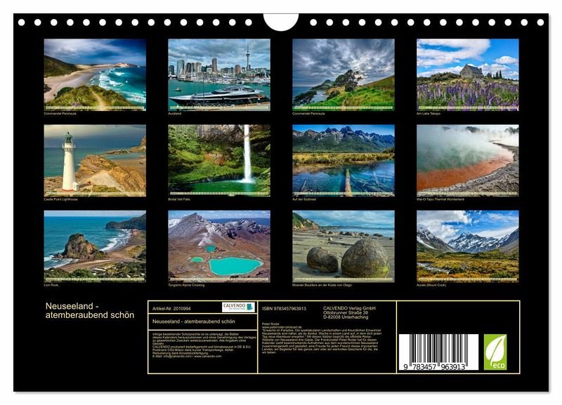 QUALITÄT - Hochwertiger Fotokalender mit 12 wunderschönen Motiven auf lichtbeständigem Bilderdruckpapier, robuste Spiralbindung mit Aufhängebügel.NACHHALTIG - deutliche Abfallreduzierung durch bedarfsgerechte Einzelstückfertigung, umweltfreundliches FSC-zertifiziertes Papier, Produktion in Deutschland, klimabewusste Logistik.PERFEKTES GESCHENK - Kalender für Freunde und Familie, für Kinder und Erwachsene, jung und alt, zu Weihnachten, Geburtstag oder zwischendurch.VIELFALT - Bildkalender in verschiedenen Formaten, z.B. DIN A5, DIN A4, DIN A3 sowie DIN A2. Ob Naturmotiv, Gemälde oder Fotos, ideal für ein persönliches Wohlfühlambiente.Neuseeland, ein beindruckendes Land, in dem fast jede Klimazone zu finden ist und das auf kleinstem Raum. von Autor(in): Peter Roder