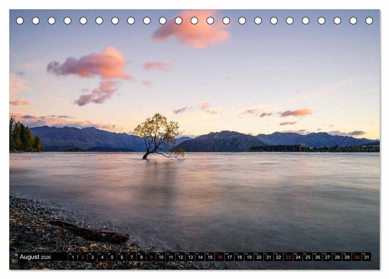 Einige der schönsten und beeindruckendsten Orte aus Neuseeland, zusammengefasst in einem Kalender. Jeden Monat gibt es ein neues einzigartiges Bild, egal ob hohe Berge, einsame Strände, atemberaubende Sonnenuntergänge oder spektakuläre Wasserfälle - all dies ist in Neuseeland und diesem Kalender vereint. Fernweh ist somit vorprogrammiert!