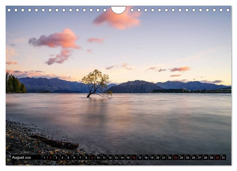 Einige der schönsten und beeindruckendsten Orte aus Neuseeland, zusammengefasst in einem Kalender. Jeden Monat gibt es ein neues einzigartiges Bild, egal ob hohe Berge, einsame Strände, atemberaubende Sonnenuntergänge oder spektakuläre Wasserfälle - all dies ist in Neuseeland und diesem Kalender vereint. Fernweh ist somit vorprogrammiert!