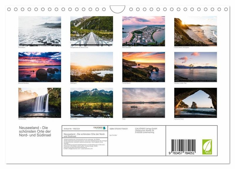 QUALITÄT - Hochwertiger Fotokalender mit 12 wunderschönen Motiven auf lichtbeständigem Bilderdruckpapier, robuste Spiralbindung mit Aufhängebügel.NACHHALTIG - deutliche Abfallreduzierung durch bedarfsgerechte Einzelstückfertigung, umweltfreundliches FSC-zertifiziertes Papier, Produktion in Deutschland, klimabewusste Logistik.PERFEKTES GESCHENK - Kalender für Freunde und Familie, für Kinder und Erwachsene, jung und alt, zu Weihnachten, Geburtstag oder zwischendurch.VIELFALT - Bildkalender in verschiedenen Formaten, z.B. DIN A5, DIN A4, DIN A3 sowie DIN A2. Ob Naturmotiv, Gemälde oder Fotos, ideal für ein persönliches Wohlfühlambiente.Die schönsten Orte in Neuseeland von Autor(in): ik