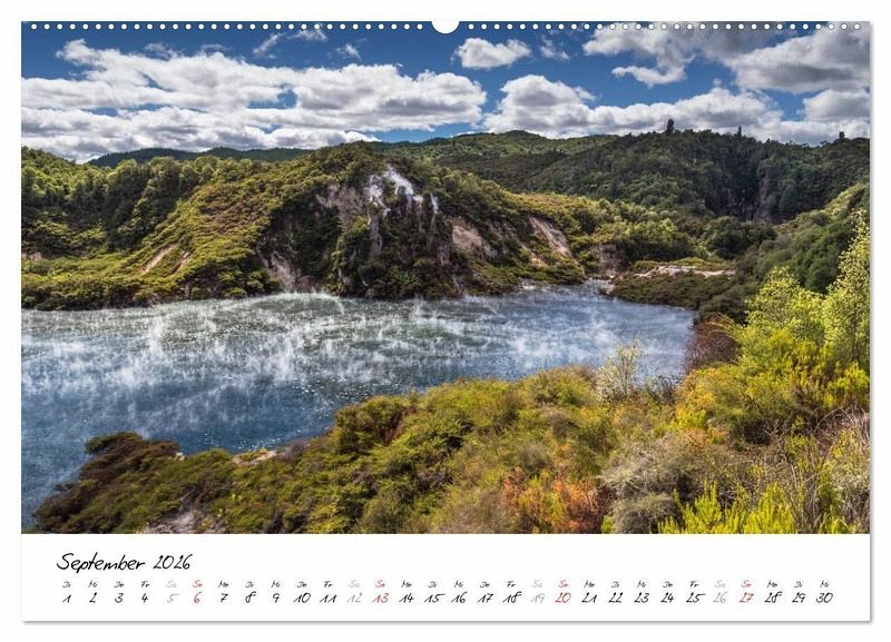 Eine Reise nach Neuseeland garantiert immer Neues. So vielfältig und spannend ist kaum ein anderes Land. Der Hobbyfotograf Thomas Klinder machte einen Streifzug über die nördliche der zwei Schwesterninseln und zeigt anhand ausgewählter Fotos die Schönheit und Weite des Landes. Ob atemberaubende Küstenlandschaften, vulkanische Aktivitäten, mystische Wasserfälle oder einfach nur durchatmen an den Stränden mit faszinierenden Sonnenuntergänge, Neuseeland bieten jedem Besucher etwas. Tauchen sie ein und machen sich ein Bild mit diesem Kalender.