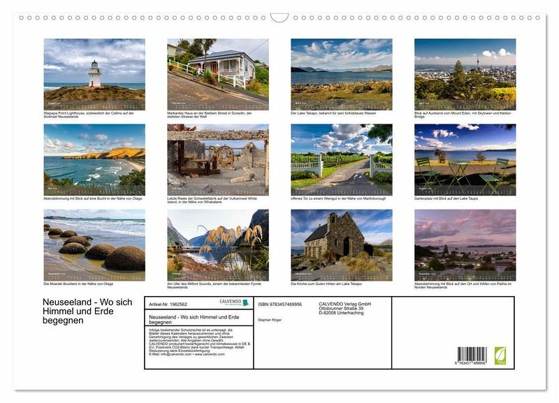 Dieser Kalender eignet sich auch hervorragend als Geschenk für Freunde, Familie oder Kollegen, die die Schönheit Neuseelands lieben oder von einer Reise dorthin träumen. Bestellen Sie jetzt und bringen Sie die atemberaubende Landschaft Neuseelands in Ihr Zuhause oder Büro!