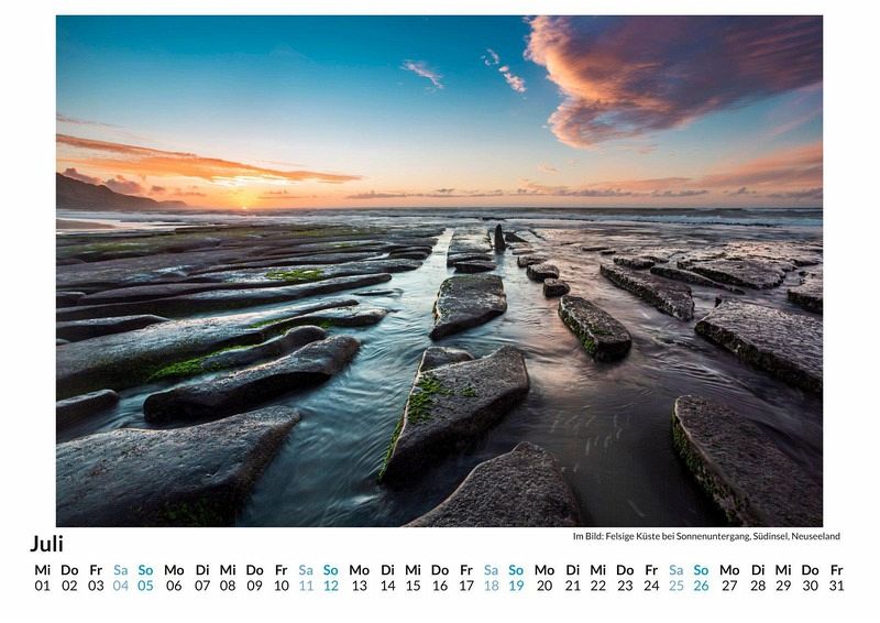 Entdecken Sie die atemberaubende Schönheit Neuseelands jeden Monat neu! Unser hochwertiger Wandkalender entführt Sie mit 12 liebevoll ausgewählten Motiven in die faszinierende Natur und Kultur dieses einzigartigen Landes. Ob majestätische Berge, endlose Strände oder malerische Landschaften - jede Seite ist ein kleines Kunstwerk auf lichtbeständigem Bilderdruckpapier. Gedruckt in Deutschland auf FSC-zertifiziertem Papier, vereint dieser Kalender Nachhaltigkeit und höchste Qualität. Perfekt für Ihr Zuhause oder als Geschenk für Reisefans. Holen Sie sich ein Stück Neuseeland an Ihre Wand und lassen Sie sich das ganze Jahr über inspirieren! Hochwertig Erleben Sie ein Jahr voller Eleganz mit unserem Premium-Fotokalender. Jedes der 12 Motive ist auf hochwertigem, lichtbeständigem Bilderdruckpapier gedruckt, um die Lebendigkeit jedes Bildes zu bewahren. Die robuste Spiralbindung gewährleistet Langlebigkeit und einfache Handhabung. Nachhaltig Unser Engagement für die Umwelt spiegelt sich in jedem Exemplar wider. Durch die Produktion auf Abruf reduzieren wir signifikant unseren Abfall. Wir verwenden ausschließlich umweltfreundliches, FSC-zertifiziertes Papier. Stolz gefertigt in Deutschland, achten wir bei unserer Logistik auf Klimaschutz, um unseren ökologischen Fußabdruck zu minimieren. Das ideale Geschenk Dieser Kalender ist das perfekte Präsent für jeden Anlass - ob Weihnachten, Geburtstage oder einfach als liebevolle Aufmerksamkeit zwischendurch. Geeignet für Freunde, Familie, Kinder und Erwachsene gleichermaßen, bereichert er jedes Zuhause mit seiner Vielfalt und Schönheit, unabhängig vom Alter der Beschenkten.