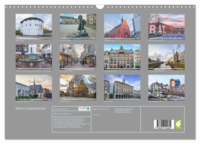 Erleben Sie das facettenreiche Neuss jeden Tag neu mit unseren einmaligen Bildern. Tauchen Sie ein in die faszinierende Geschichte, das lebendige Stadtleben und die malerischen Landschaften dieser charmanten Stadt am Rhein. Jeder Monat präsentiert ein beeindruckendes Bild, das die Vielfalt und Schönheit Neuss' einfängt. Perfekt als Geschenk für Neuss-Enthusiasten oder als Mitbringsel, um die einzigartige Atmosphäre dieser Stadt zu teilen. Bestellen Sie jetzt und lassen Sie sich von den inspirierenden Bildern das ganze Jahr über begleiten!