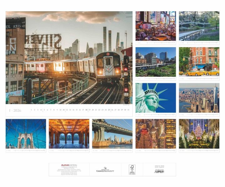 Spektakuläre New-York-Bilder - Brillanter Bilderdruck auf hochwertigem Papier- Format 60 x 50 cm- Stabile Spiralbindung mit einem Aufhänger- Mit den wichtigsten Feiertagen
