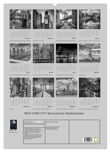 Erleben Sie die amerikanische Millionenmetropole New York City in 12 fantastischen Motiven. Die ausdrucksstarken Schwarz-Weißen-Ansichten spiegeln die außergewöhnliche Lebendigkeit wider. Ein klassischer Terminplaner mit architektonisch anspruchsvollen Fotografien und unverwechselbaren Impressionen bei Tag und Nacht.
