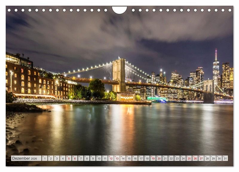 New York City ist ein schillernder Teppich aus Architektur und Charme das ein unerschöpfliches Spektrum an Sehenswürdigkeiten entfaltet, die zum Entdecken einladen. Von der stolz im Hafen thronenden Freiheitsstatue bis hin zur beeindruckenden Skyline der Hudson Yards und dem ehrwürdigen Empire State Building - die Energie dieser Stadt ist einfach mitreißend. In den charmanten Vierteln wie Park Slope reihen sich malerische Brownstone-Häuser an die schattigen Baumalleen und verleihen dieser lebhaften Stadt eine warme, einladende Atmosphäre. Dieser Kalender wird nicht nur Ihr Jahr begleiten, sondern auch Ihre Leidenschaft für diese faszinierende Metropole neu entfachen.