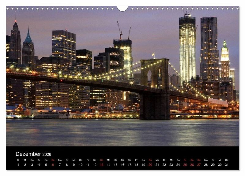 Monatskalender mit 12 Bildern+Titelbild quer durch die Stadt New York. Der Kalender zeigt schöne Bilder von der Skyline, dem Times Squiare sowie den Central Park. New York "Big Apple" ist bekannt als Stadt, die niemals schläft.