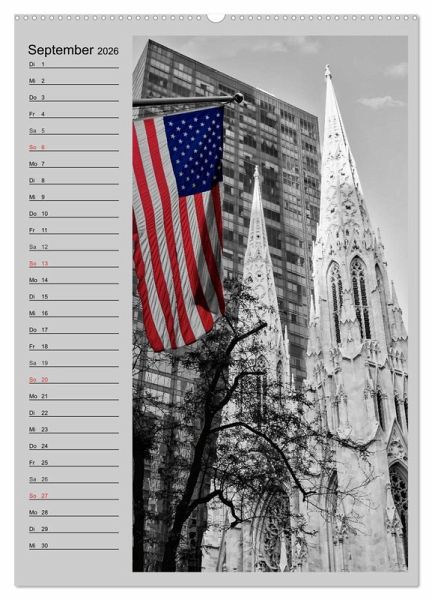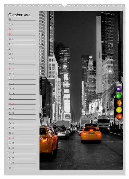 Gehen Sie auf Entdeckungsreise durch New York City. Erleben Sie die Vielfalt, dieser architektonisch Einzigartigen Metropole. Klassische schwarz-weiß Ansichten mit ausgewählten Farbakzenten lassen Sie in die Lebendigkeit dieser Stadt eintauchen. Mit Planerfunktion, so haben Sie all Ihre Termine immer im Blick.