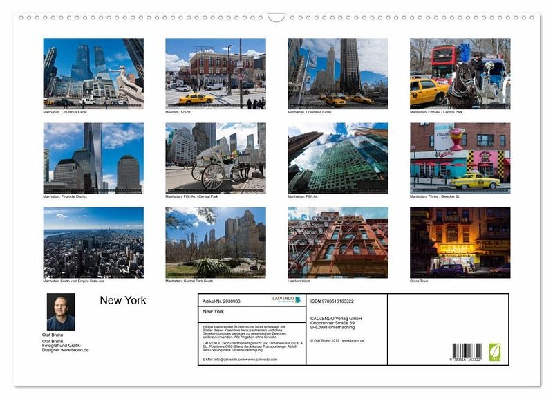 QUALITÄT - Hochwertiger Fotokalender mit 12 wunderschönen Motiven auf lichtbeständigem Bilderdruckpapier, robuste Spiralbindung mit Aufhängebügel.NACHHALTIG - deutliche Abfallreduzierung durch bedarfsgerechte Einzelstückfertigung, umweltfreundliches FSC-zertifiziertes Papier, Produktion in Deutschland, klimabewusste Logistik.PERFEKTES GESCHENK - Kalender für Freunde und Familie, für Kinder und Erwachsene, jung und alt, zu Weihnachten, Geburtstag oder zwischendurch.VIELFALT - Bildkalender in verschiedenen Formaten, z.B. DIN A5, DIN A4, DIN A3 sowie DIN A2. Ob Naturmotiv, Gemälde oder Fotos, ideal für ein persönliches Wohlfühlambiente.12 hochauflösende New York-Fotografien von Olaf Bruhn. von Autor(in): Olaf Bruhn