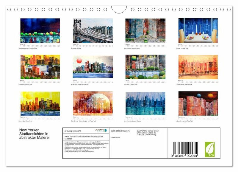 QUALITÄT - Hochwertiger Fotokalender mit 12 wunderschönen Motiven auf lichtbeständigem Bilderdruckpapier, robuste Spiralbindung mit Aufhängebügel.NACHHALTIG - deutliche Abfallreduzierung durch bedarfsgerechte Einzelstückfertigung, umweltfreundliches FSC-zertifiziertes Papier, Produktion in Deutschland, klimabewusste Logistik.PERFEKTES GESCHENK - Kalender für Freunde und Familie, für Kinder und Erwachsene, jung und alt, zu Weihnachten, Geburtstag oder zwischendurch.VIELFALT - Bildkalender in verschiedenen Formaten, z.B. DIN A5, DIN A4, DIN A3 sowie DIN A2. Ob Naturmotiv, Gemälde oder Fotos, ideal für ein persönliches Wohlfühlambiente.Außergewöhnliche und farbenfrohe Stadtansichten New Yorks von Autor(in): Gerhard Kraus