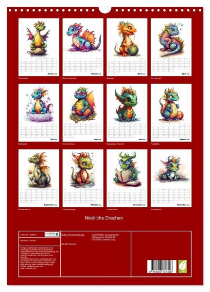 QUALITÄT - Hochwertiger Fotokalender mit 12 wunderschönen Motiven auf lichtbeständigem Bilderdruckpapier, robuste Spiralbindung mit Aufhängebügel.NACHHALTIG - deutliche Abfallreduzierung durch bedarfsgerechte Einzelstückfertigung, umweltfreundliches FSC-zertifiziertes Papier, Produktion in Deutschland, klimabewusste Logistik.PERFEKTES GESCHENK - Kalender für Freunde und Familie, für Kinder und Erwachsene, jung und alt, zu Weihnachten, Geburtstag oder zwischendurch.VIELFALT - Bildkalender in verschiedenen Formaten, z.B. DIN A5, DIN A4, DIN A3 sowie DIN A2. Ob Naturmotiv, Gemälde oder Fotos, ideal für ein persönliches Wohlfühlambiente.Lustige Drachenkinder für ein ganzes Jahr von Autor(in): Kerstin Waurick