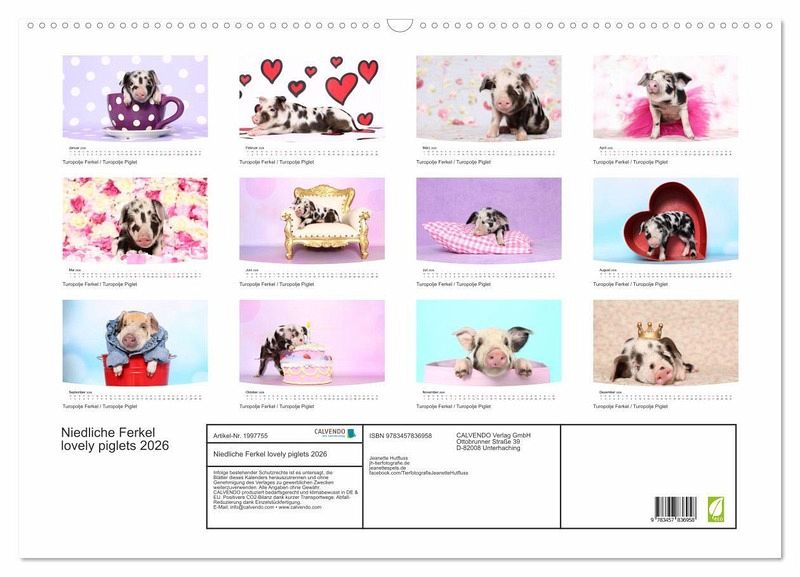 QUALITÄT - Hochwertiger Fotokalender mit 12 wunderschönen Motiven auf lichtbeständigem Bilderdruckpapier, robuste Spiralbindung mit Aufhängebügel.NACHHALTIG - deutliche Abfallreduzierung durch bedarfsgerechte Einzelstückfertigung, umweltfreundliches FSC-zertifiziertes Papier, Produktion in Deutschland, klimabewusste Logistik.PERFEKTES GESCHENK - Kalender für Freunde und Familie, für Kinder und Erwachsene, jung und alt, zu Weihnachten, Geburtstag oder zwischendurch.VIELFALT - Bildkalender in verschiedenen Formaten, z.B. DIN A5, DIN A4, DIN A3 sowie DIN A2. Ob Naturmotiv, Gemälde oder Fotos, ideal für ein persönliches Wohlfühlambiente.Kleine Ferkel im Studio von Autor(in): Jeanette Hutfluss