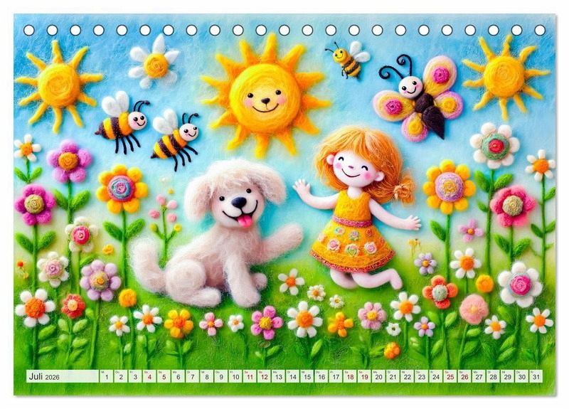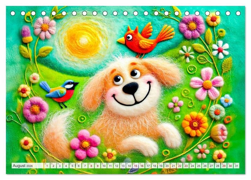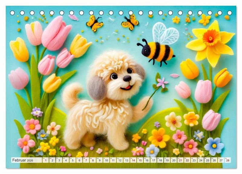 Tauche ein in die zauberhafte Welt der Filzhunde! Der Kalender "Niedliche Filzhunde - Liebevolle Ideen aus Filz und Wolle" präsentiert kunstvolle und fröhliche KI-generierte Szenen von Hunden und anderen Freunden im Garten aus Filz. Perfekt für alle, die kreative Handwerkskunst und niedliche Hunde lieben.