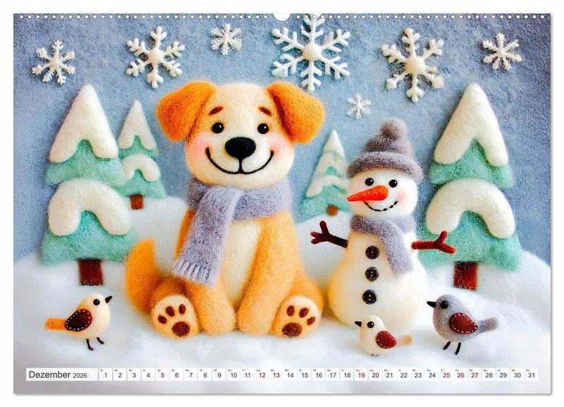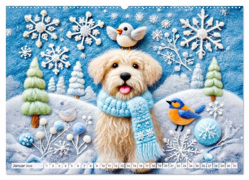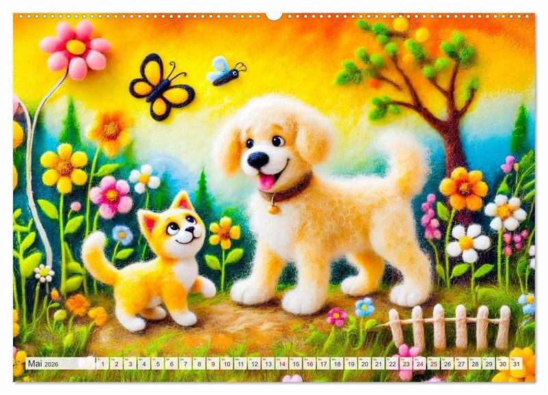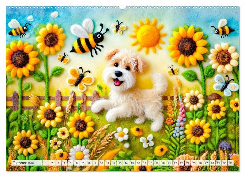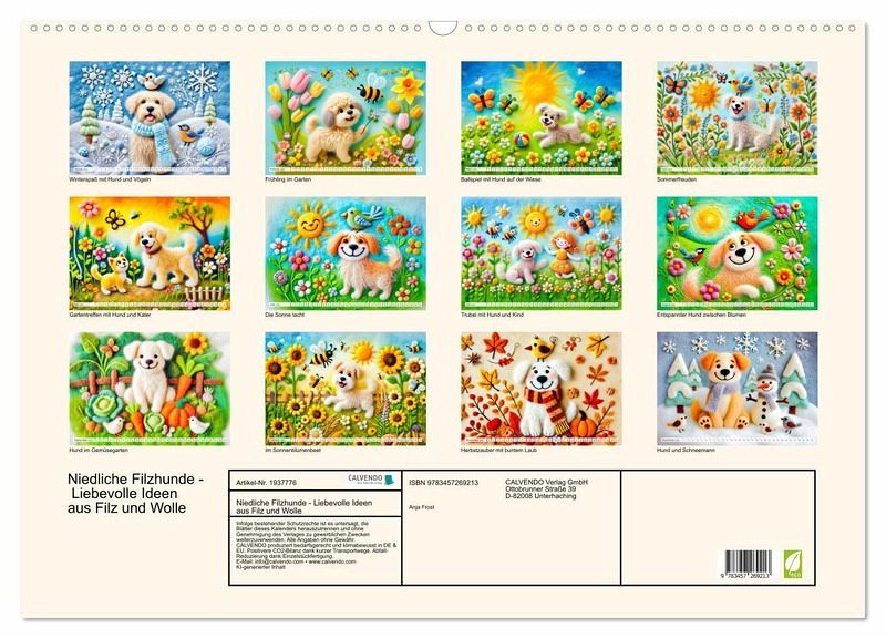 Tauche ein in die zauberhafte Welt der Filzhunde! Der Kalender "Niedliche Filzhunde - Liebevolle Ideen aus Filz und Wolle" präsentiert kunstvolle und fröhliche KI-generierte Szenen von Hunden und anderen Freunden im Garten aus Filz. Perfekt für alle, die kreative Handwerkskunst und niedliche Hunde lieben.
