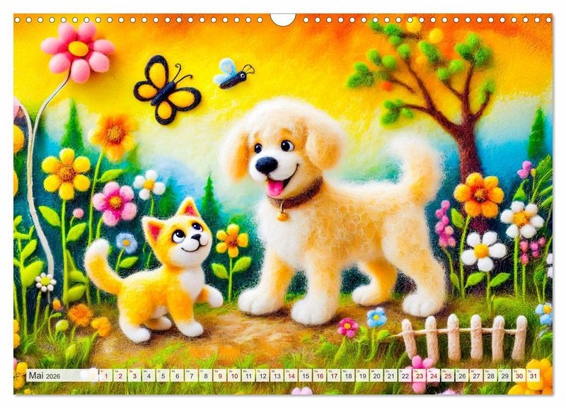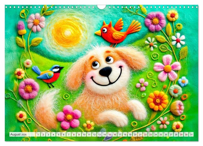 Tauche ein in die zauberhafte Welt der Filzhunde! Der Kalender "Niedliche Filzhunde - Liebevolle Ideen aus Filz und Wolle" präsentiert kunstvolle und fröhliche KI-generierte Szenen von Hunden und anderen Freunden im Garten aus Filz. Perfekt für alle, die kreative Handwerkskunst und niedliche Hunde lieben.