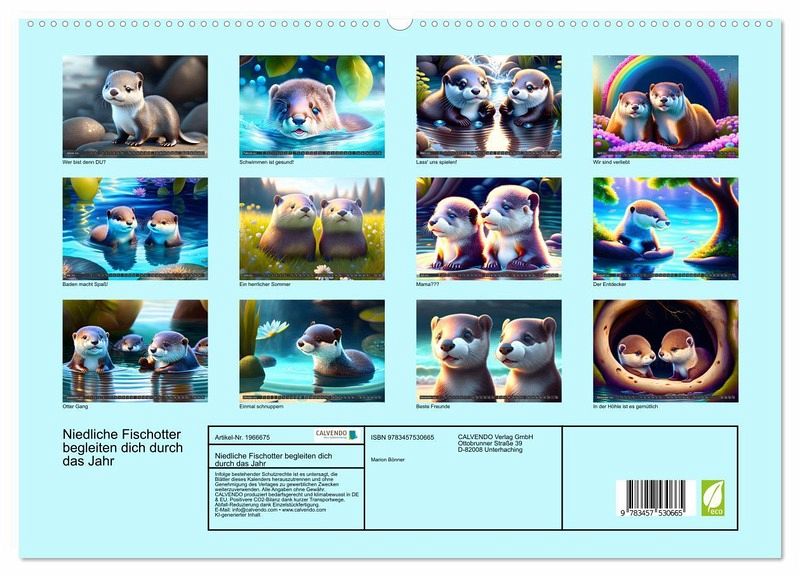 PREMIUM-LINIE - Brillanter Fotokalender mit 12 wunderschönen Motiven, Kunstdruck in Hochglanz in Museumsqualität.QUALITÄT - edle Materialien, stabile Rückwand mit 2 innovativen Einstecktaschen für eine optimale Präsentation an der Wand.NACHHALTIG - deutliche Abfallreduzierung durch bedarfsgerechte Einzelstückfertigung, umweltfreundliches FSC-zertifiziertes Papier, Produktion in Deutschland, klimabewusste Logistik.PERFEKTES GESCHENK - Kalender für Freunde und Familie, für Kinder und Erwachsene, jung und alt, zu Weihnachten, Geburtstag oder zwischendurch.Niedliche und lustige Fischotter in ihrem Element von Autor(in): Marion Bönner