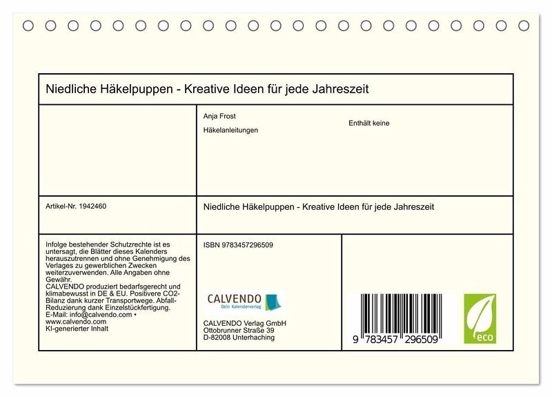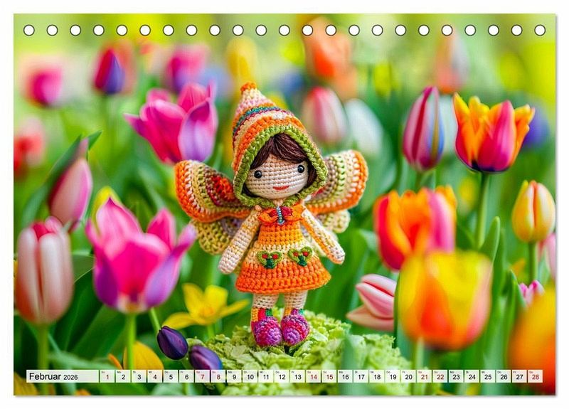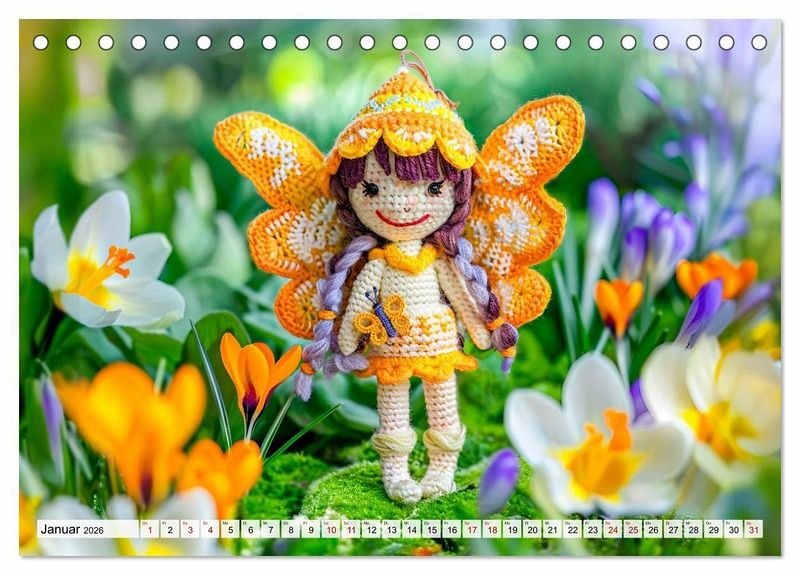 Der Kalender "Niedliche Häkelpuppen - Kreative Ideen für jede Jahreszeit" zeigt zauberhafte KI-generierte Häkelpuppen mit Flügeln, die harmonisch in die jeweilige Jahreszeit eingebettet sind. Umgeben von passenden Blumen und liebevollen Details, entstehen stimmungsvolle Szenen, die zum Träumen einladen. Eine wunderbare Inspiration für alle, die handgefertigte Kunst lieben. Bitte beachten: Es handelt sich um künstlerische Darstellungen und enthält keine Häkelanleitungen.