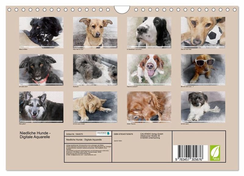 Der exklusive Kalender "Niedliche Hunde" vereint das Beste aus Kunst und Tierliebe. Jedes Monatsblatt zeigt zauberhafte, digital gestaltete Aquarelle, die die einzigartigen Persönlichkeiten unserer vierbeinigen Freunde in sanften Farben und liebevollen Details einfangen.