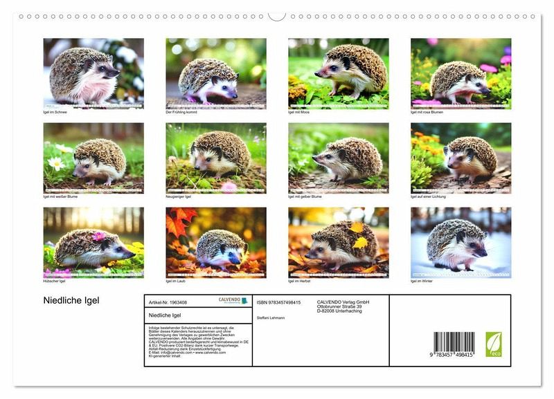 PREMIUM-LINIE - Brillanter Fotokalender mit 12 wunderschönen Motiven, Kunstdruck in Hochglanz in Museumsqualität.QUALITÄT - edle Materialien, stabile Rückwand mit 2 innovativen Einstecktaschen für eine optimale Präsentation an der Wand.NACHHALTIG - deutliche Abfallreduzierung durch bedarfsgerechte Einzelstückfertigung, umweltfreundliches FSC-zertifiziertes Papier, Produktion in Deutschland, klimabewusste Logistik.PERFEKTES GESCHENK - Kalender für Freunde und Familie, für Kinder und Erwachsene, jung und alt, zu Weihnachten, Geburtstag oder zwischendurch.Bezaubernde und naturnahe Bilder von Igeln von Autor(in): Steffani Lehmann