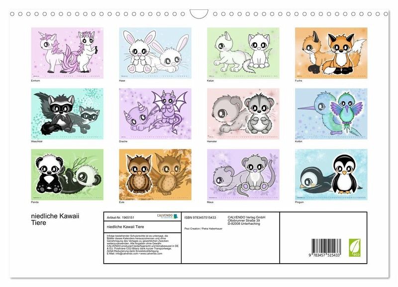 QUALITÄT - Hochwertiger Fotokalender mit 12 wunderschönen Motiven auf lichtbeständigem Bilderdruckpapier, robuste Spiralbindung mit Aufhängebügel.NACHHALTIG - deutliche Abfallreduzierung durch bedarfsgerechte Einzelstückfertigung, umweltfreundliches FSC-zertifiziertes Papier, Produktion in Deutschland, klimabewusste Logistik.PERFEKTES GESCHENK - Kalender für Freunde und Familie, für Kinder und Erwachsene, jung und alt, zu Weihnachten, Geburtstag oder zwischendurch.VIELFALT - Bildkalender in verschiedenen Formaten, z.B. DIN A5, DIN A4, DIN A3 sowie DIN A2. Ob Naturmotiv, Gemälde oder Fotos, ideal für ein persönliches Wohlfühlambiente.Kleine süße Tiere im Kawaii Zeichenstil. von Autor(in): Pezi Creation
